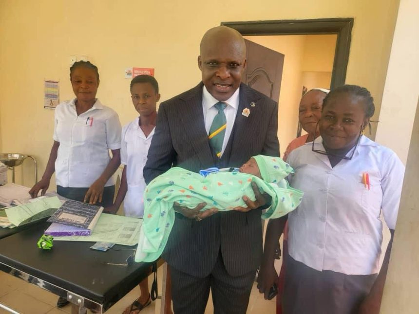The Chairman of Ika Local Government Area of Akwa Ibom State, Barr. Utibe Nwoko has paid an unscheduled visit to the first baby delivered at the newly commissioned Abiakana Model Primary Health Centre.