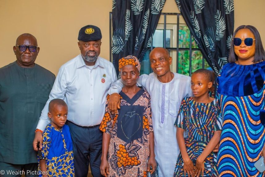 Receiving the keys, Sunday Akpakpan Useh, flanked by his wife, Mercy, and their two children, expressed gratitude to Prince Akpabio for the gesture, saying he would remain forever thankful for the life-changing intervention.