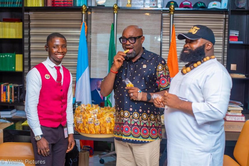 In a brief but inspiring interaction, Prince Akpabio II commended the young entrepreneur’s ingenuity and self-reliance, describing Mr. Phenomenal Chips as “a brand that must be protected and nurtured.”